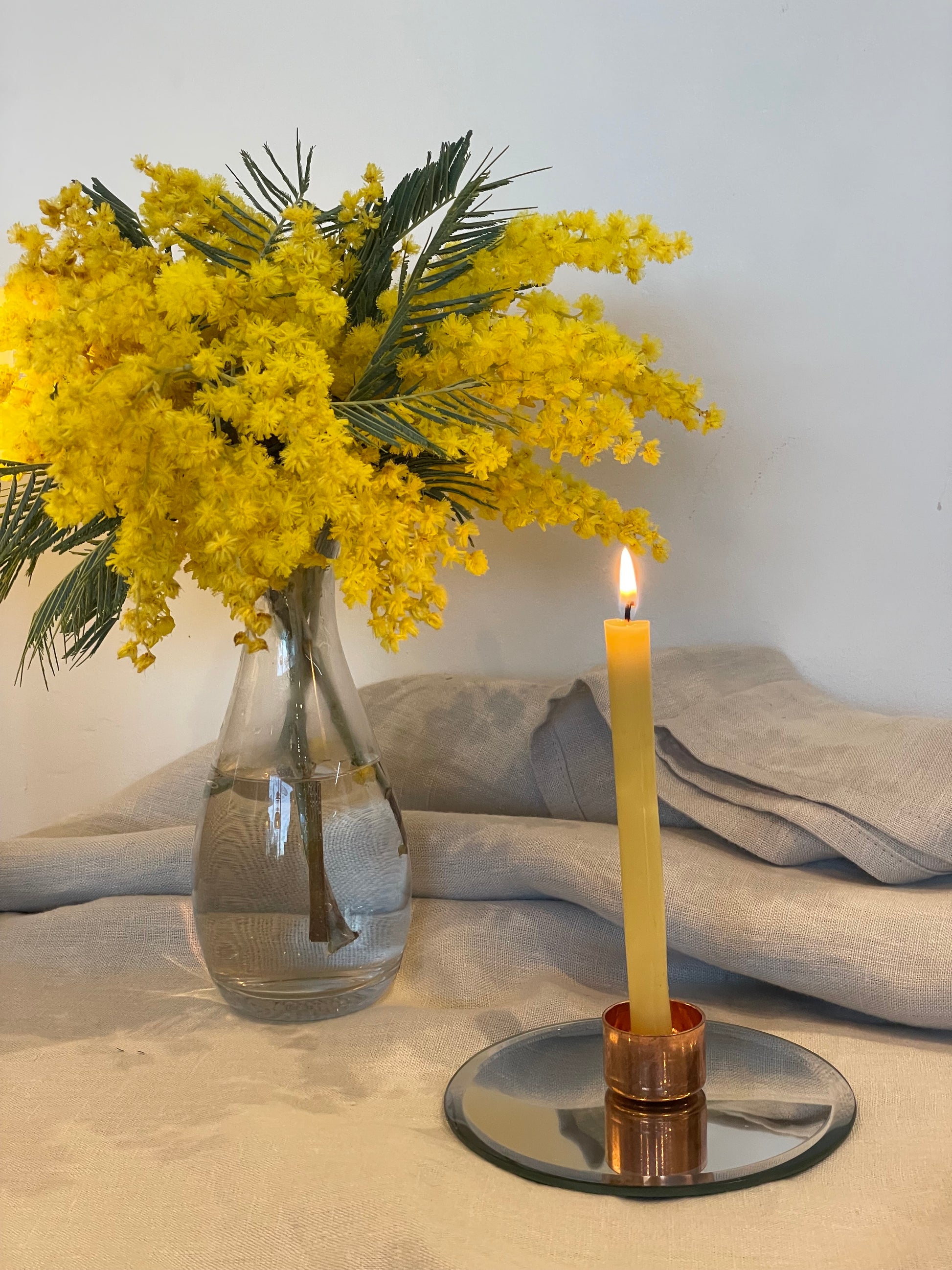 Relax and unwind pure beeswax candle gift set. 6 beeswax candles with solid copper holder. Pure beeswax meditation candles. Calming and relaxing candle set. Candles made from 100% pure beeswax sourced from small-scale London beekeepers. Friendship gift