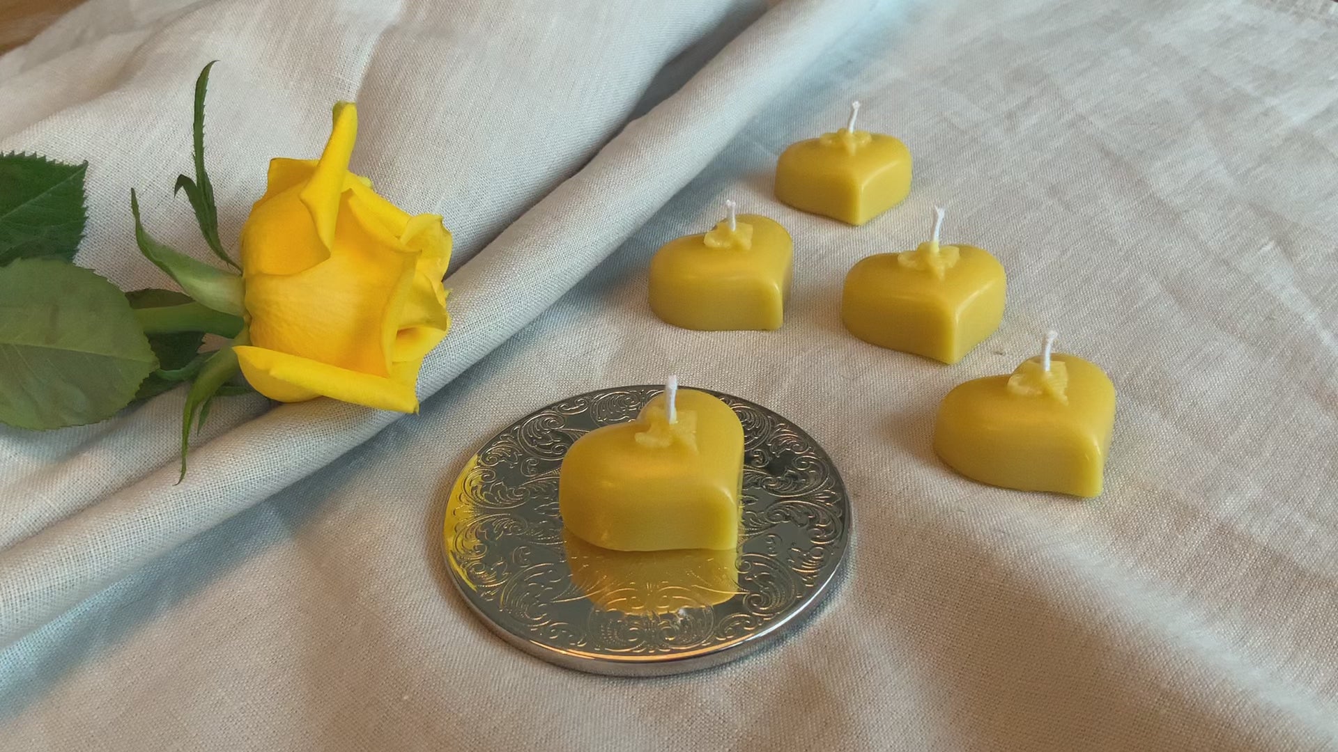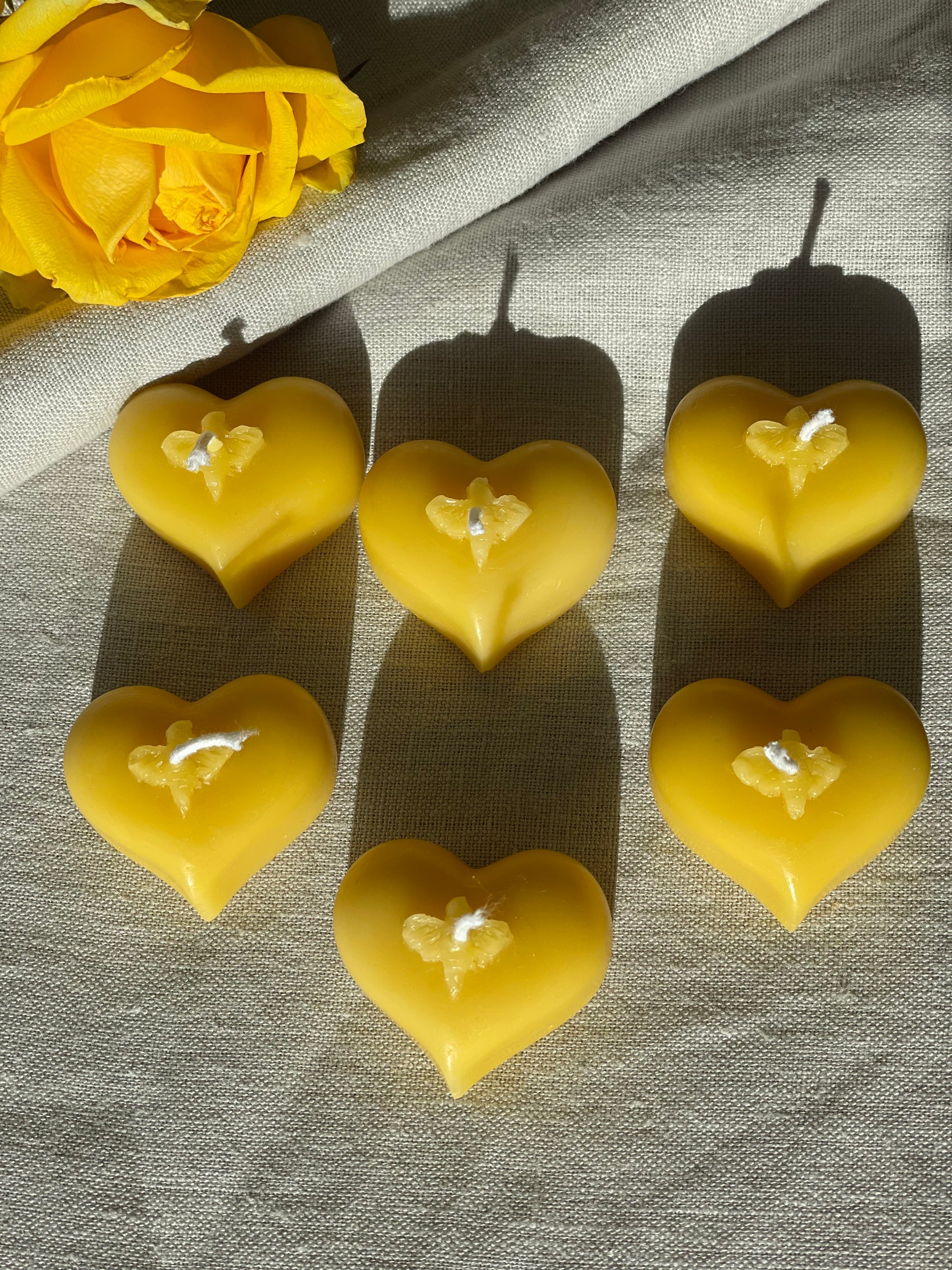6 Pure Beeswax Bee Heart Tealights, Sustainable candles, Tealight candle gift set, Zero waste refills, Candles made from 100% beeswax sourced from small-scale London beekeepers