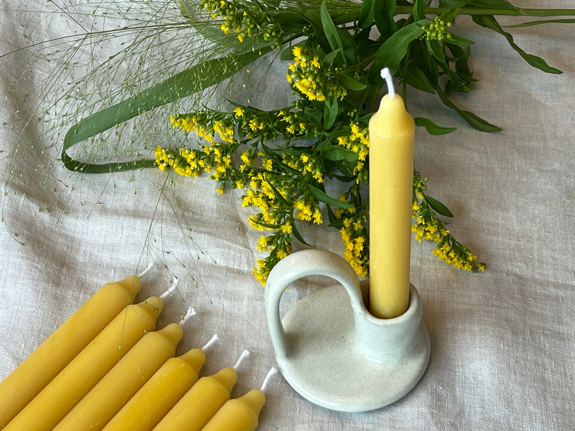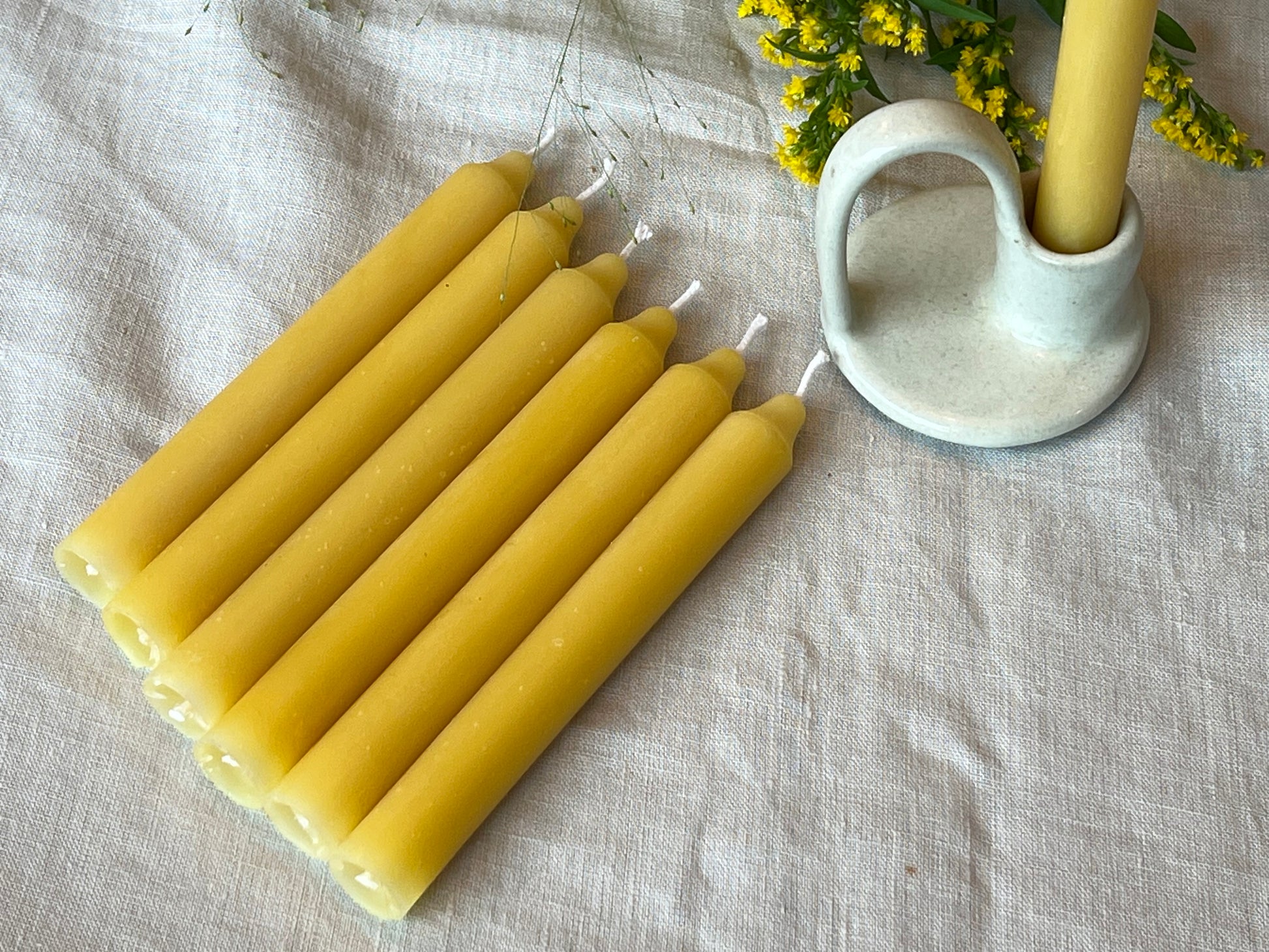 With their clean, classic lines and crafted by hand, our Pure Beeswax Straight Dinner Candles are a celebration of simplicity and natural beauty. Each pair is poured using 100% pure beeswax from independent London hives — untreated, unblended and utterly natural.