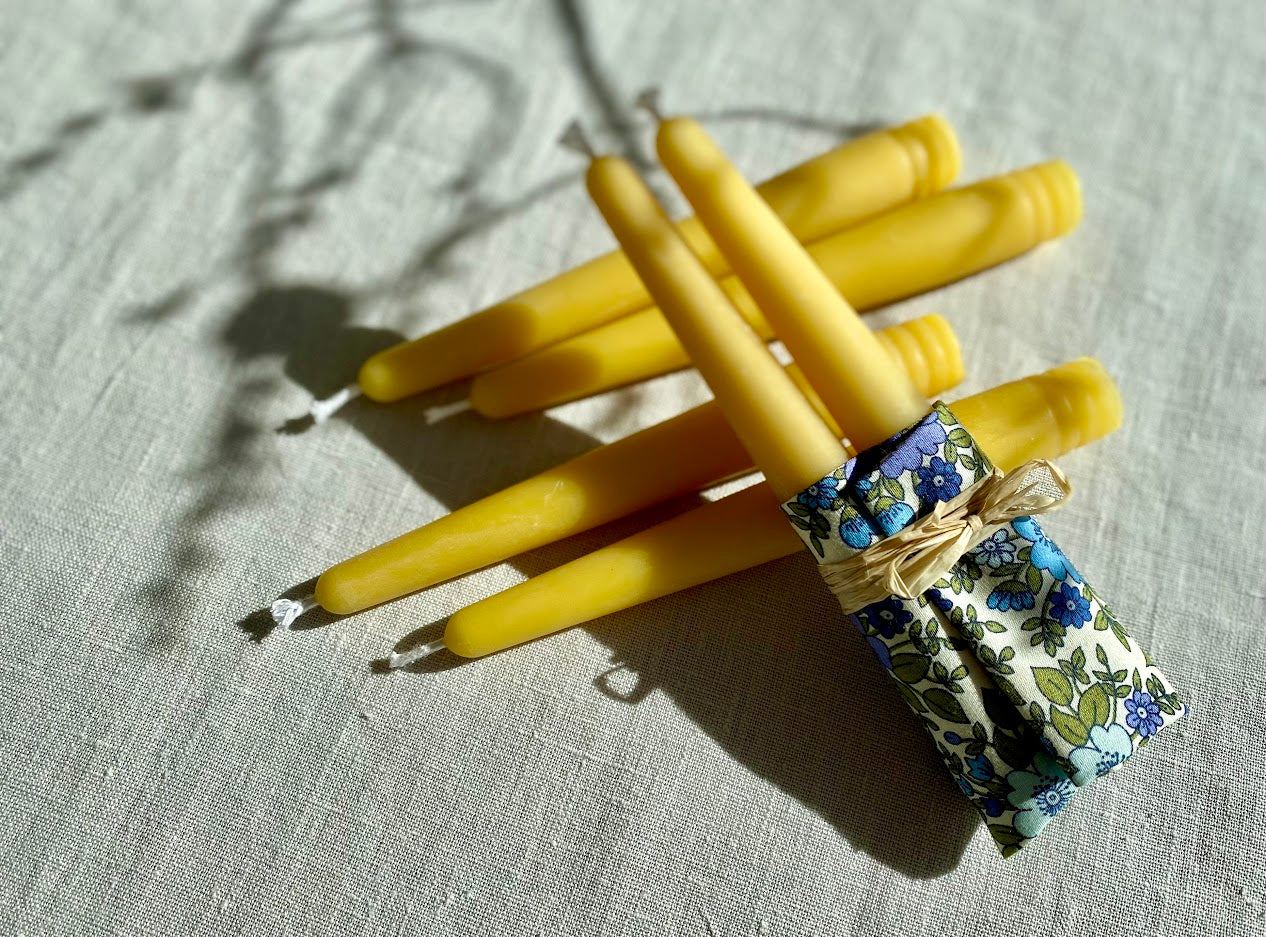 Discover the simple yet mesmerising qualities of natural beeswax with this elegant range of hand poured taper candles. Handmade and poured in my London workshop, these traditional taper candles are produced using the highest quality of unrefined London Beeswax from the 'Local Honey-Man'. The candles burn evenly for up to 5 hours evoking a calming, warming ambience for any interior.