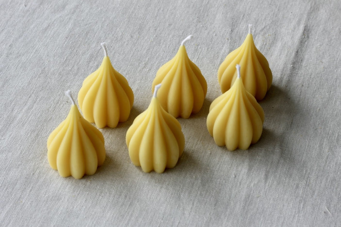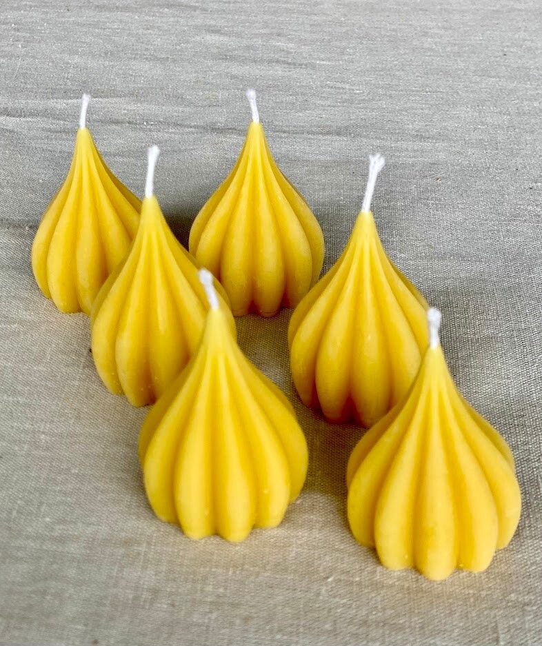 Pure beeswax zero-waste large tealight candle, Natural 'garlic' shaped tealight, Sustainable candles, Zero waste refills, Candles made from 100% beeswax sourced from small-scale London beekeepers, Beautiful organic, natural votive candles