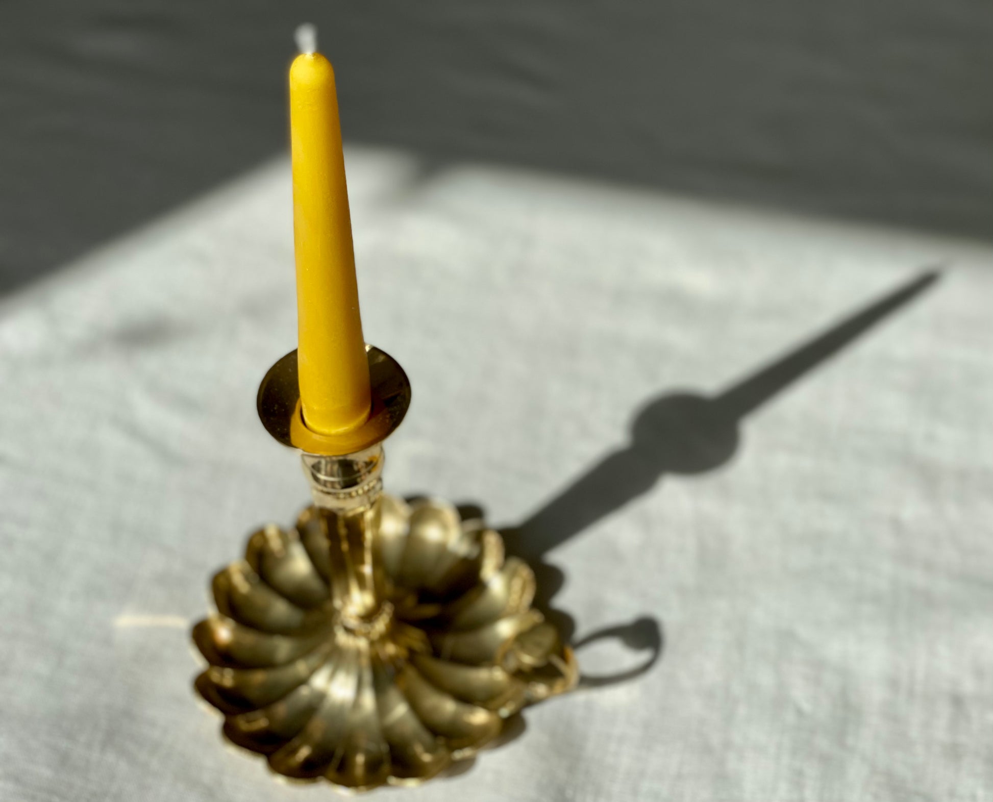 - 2 pure beeswax spiral taper candles (9 inch height)