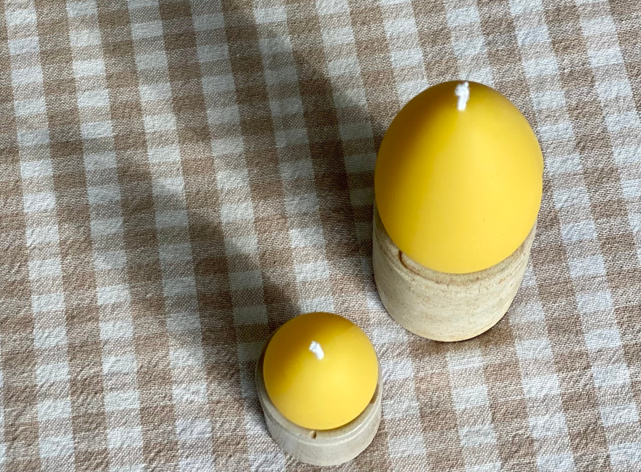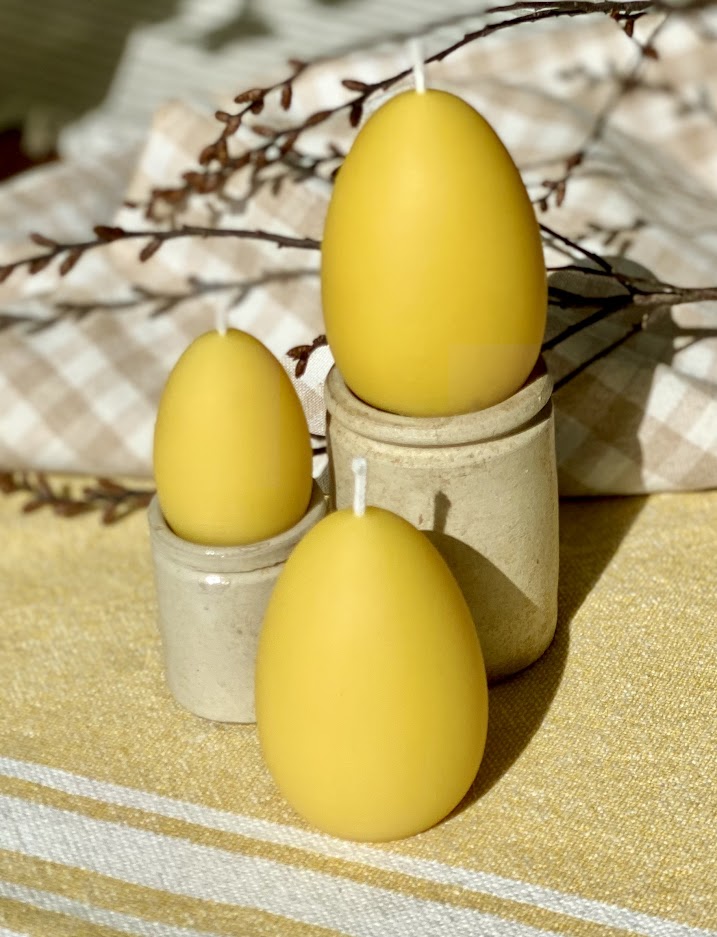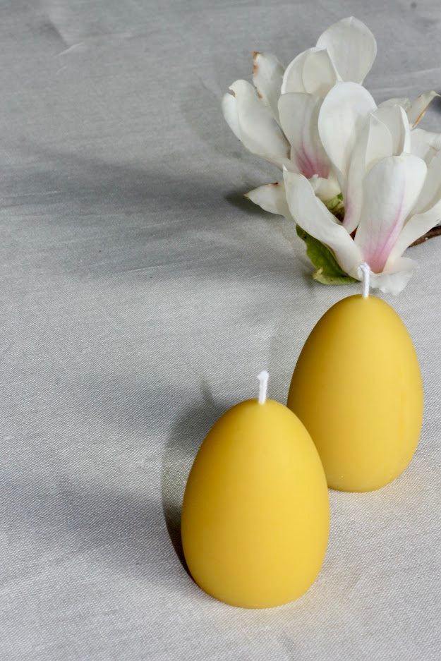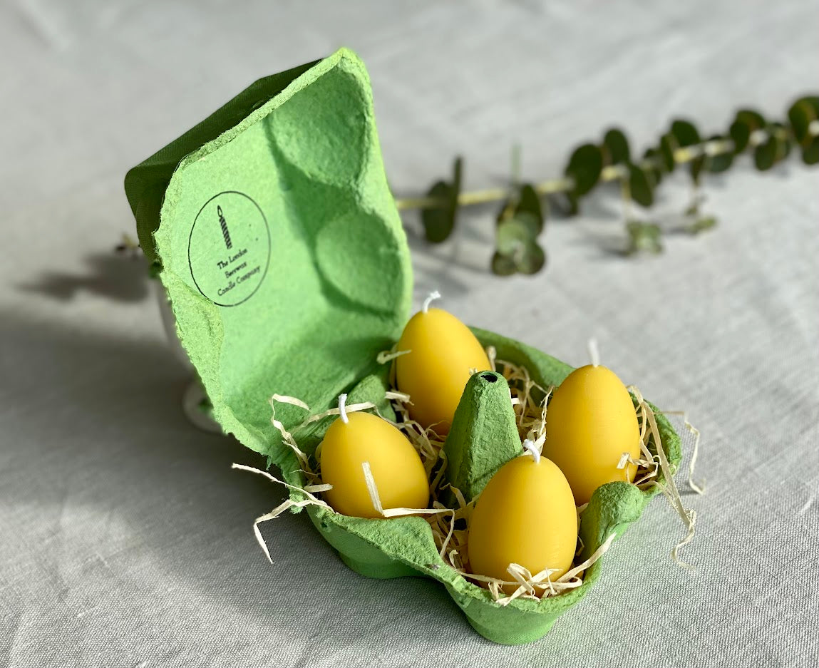 100% pure beeswax candles with 100% pure cotton wicks (lead and chlorine-free) are a beautiful choice when it comes to candles. Our pure beeswax candles are eco-friendly, with no chemical process involved, and are completely biodegradable. Beeswax candles emit negative ions when it burns, which are known to reduce pollution in the air we breathe. These 4 beautiful egg candles are presented in a box so they are perfect as a gift or as part of a unique table decoration to brighten any corner of your home.  It is a great way to sample the mesmerising quality of a beeswax candle and the perfect way to share the joy of Beeswax with all candle lovers!