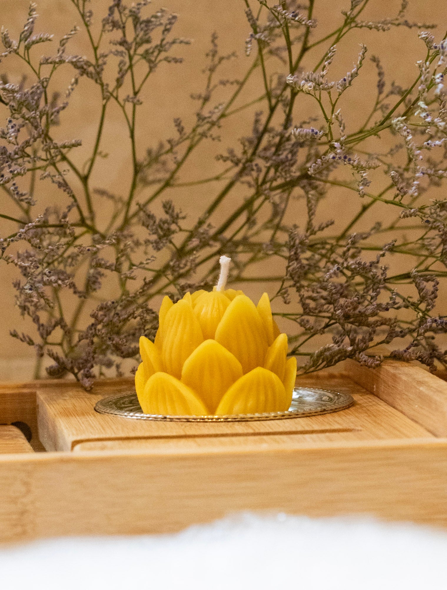 Lotus candle, Pure beeswax flower candle with eco cotton wicks, Gift for friend, Bath candle,Yoga and meditation candle, Handmade supporting urban London beekeepers