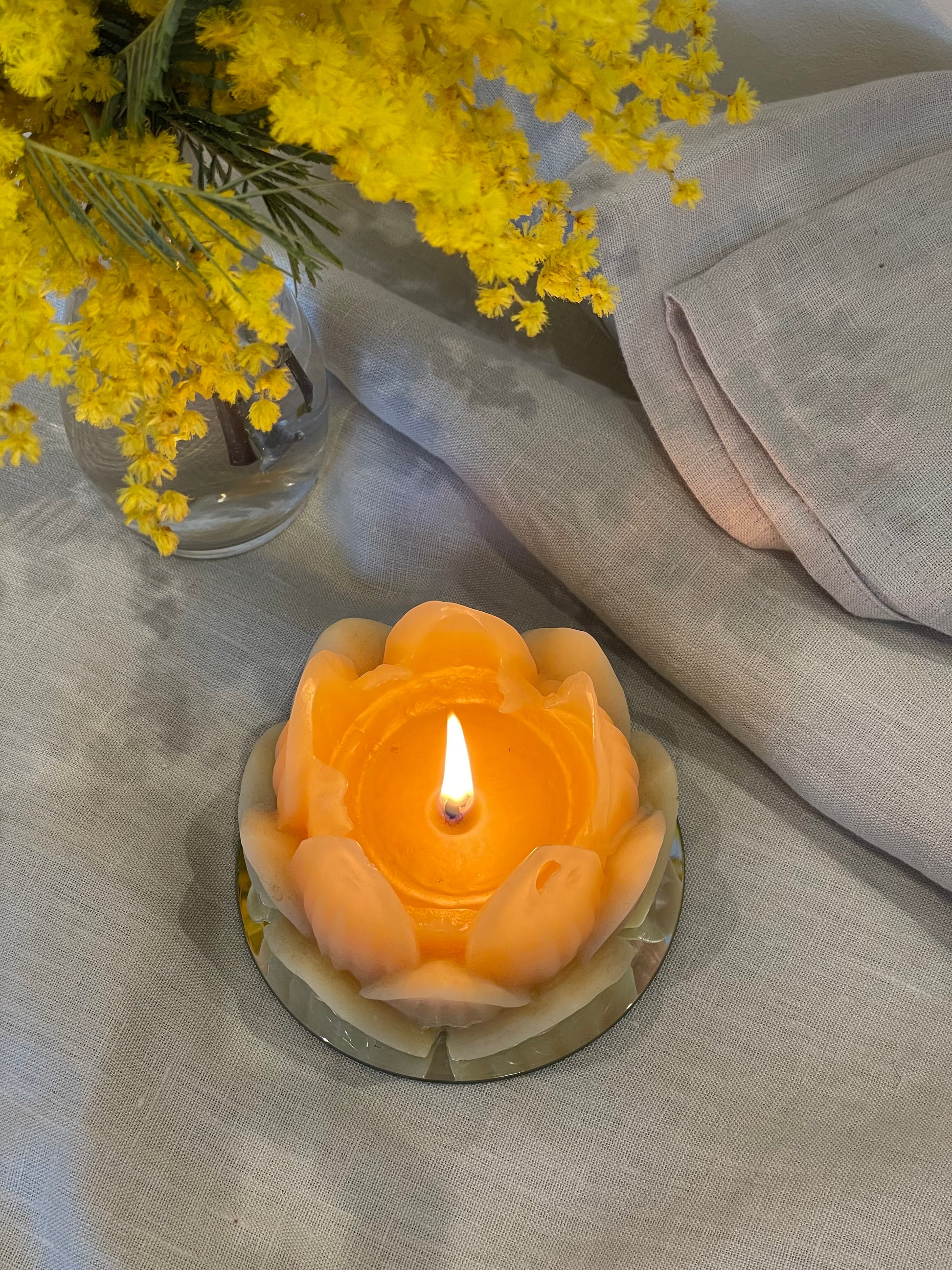 Crafted with love and made by hand, each lotus flower candle is made form 100% London beeswax. With 100% pure cotton wicks, free from lead and chlorine, they stand as a testament to both health-consciousness and relaxation. Choose the most beautiful way to illuminate your living/work space with candles that not only enhance your surroundings but also promote a sense of well-being and tranquillity.